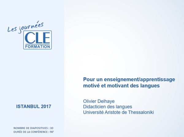 Lors des Journées CLE Formation organisées à Istanbul en 2017, cette conférence inaugurale a exploré les stratégies pour renforcer la motivation dans l’apprentissage des langues. En mettant l’accent sur des pratiques innovantes et des approches différenciées, cette présentation propose des solutions concrètes pour rendre l’enseignement motivant et motivé.