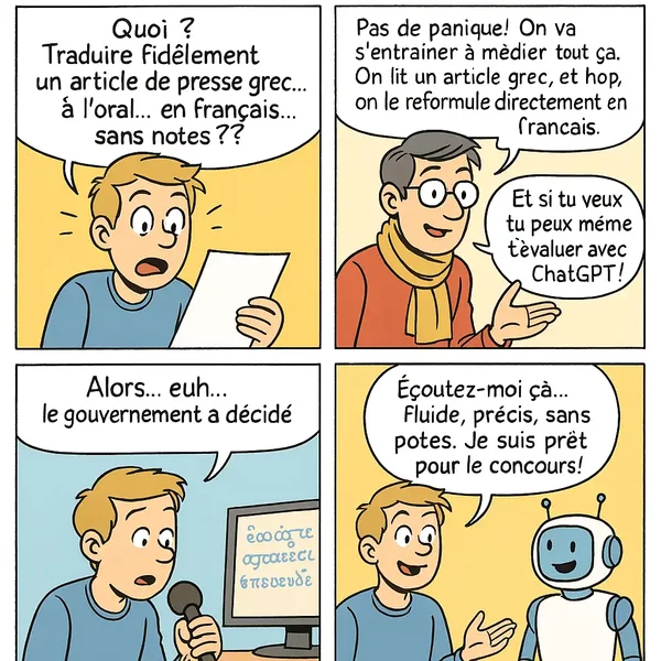 Dans de nombreux concours exigeant la maîtrise du français langue étrangère, les candidats doivent comprendre, reformuler et restituer des textes complexes. Pour s’entraîner à cette compétence, un exercice aussi simple que puissant consiste à traduire oralement, en direct, des articles entre le grec et le français. Voici comment pratiquer et progresser.